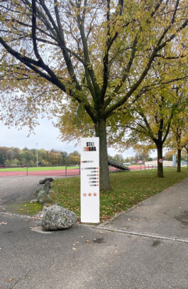 THE SIGNAGE ENSURES CLEAR IDENTIFICATION OF VARIOUS LOCATIONS, FACILITATES NAVIGATION AND PROVIDES INFORMATIONAL SPACES DETAILING ACCESS MODALITIES AND SCHEDULES.